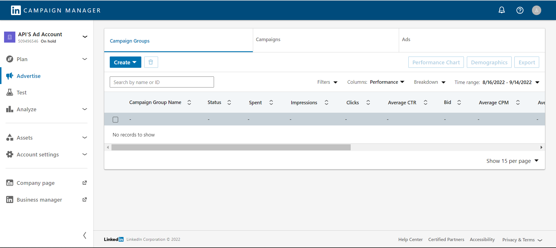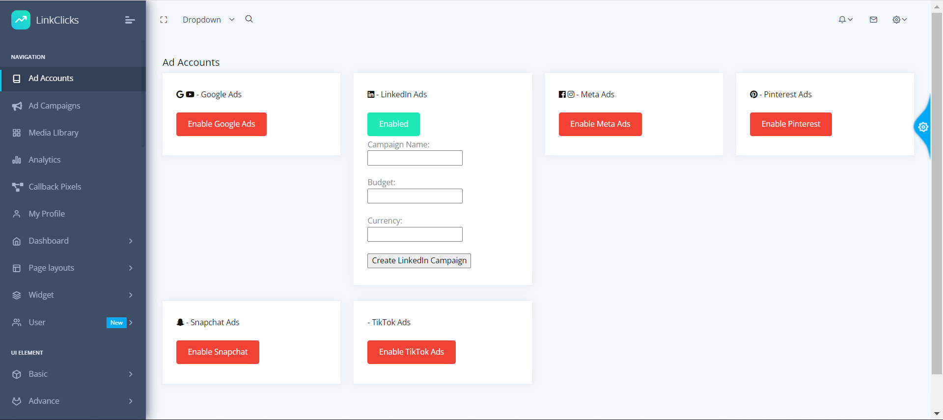 to create an external campaign manager for LinkedIn. First, user authentication is required, and the access/refresh